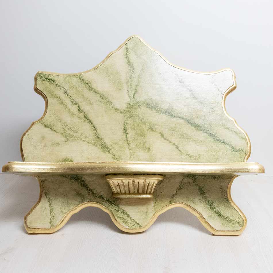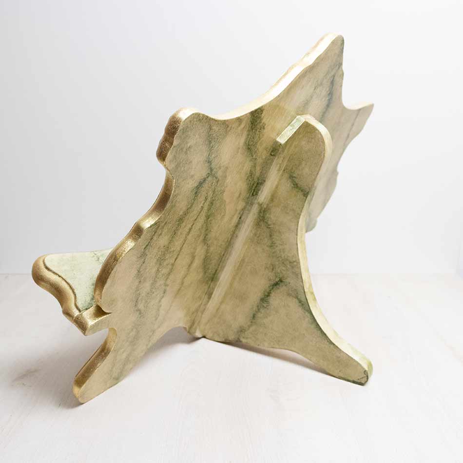 Atril de sobremesa con imitación a mármol verde y cantos dorados en pan de oro.