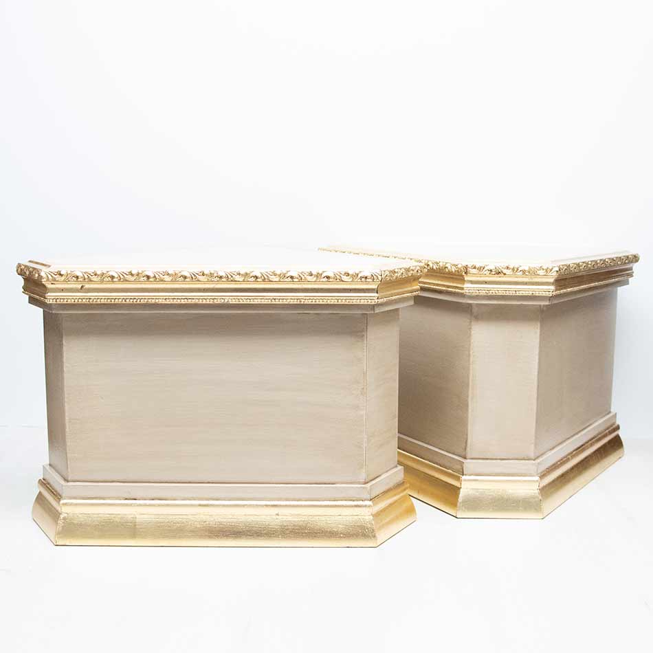 Peana – base con pátina de envejecido y dorado en pan de oro para maceteros, candelabros, exorno.