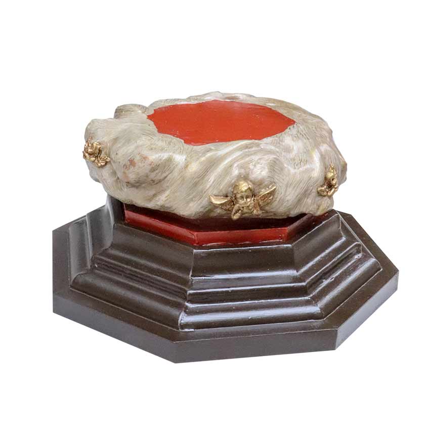 InicioPeanaPeana San Diego de Alcalá Peana San Diego de Alcalá210,00€ Medidas: 13x26x26. Base-11×11 cm (alto x ancho x fondo) Peana policromada con nube modelada a mano, decorada con querubines. Comprar el producto SKU: P00471 Categoría: Peana Etiquetas: nube, peana, querubines Product ID: 46894 Descripción Descripción [wpforms id=»4″ title=»true» description=»true»] Productos relacionados Peana Santa Carlota 210,00€ Comprar el producto Peana San Zoilo 320,00€ Comprar el producto Peana Santa Justa 180,00€ Comprar el producto