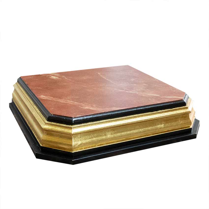 InicioPeanaPeana Santa Antusa Peana Santa Antusa160,00€ Medidas: arriba: 31×31 cm abajo: 39×25 cm alto: 8 cm Peana a tres caras. Cuerpo policromado en negro con moldura dorada en pan de oro y suelo con imitación a mármol rojo. Comprar el producto SKU: P00470 Categoría: Peana Etiquetas: dorado, mármol, negro, pan de oro, peana, rojo Product ID: 46860 Descripción Descripción [wpforms id=»4″ title=»true» description=»true»] Productos relacionados Peana San Nicomedes 360,00€ Comprar el producto Peana San Carlos Borromeo 220,00€ Comprar el producto Peana Santa Laura 65,00€ Comprar el producto