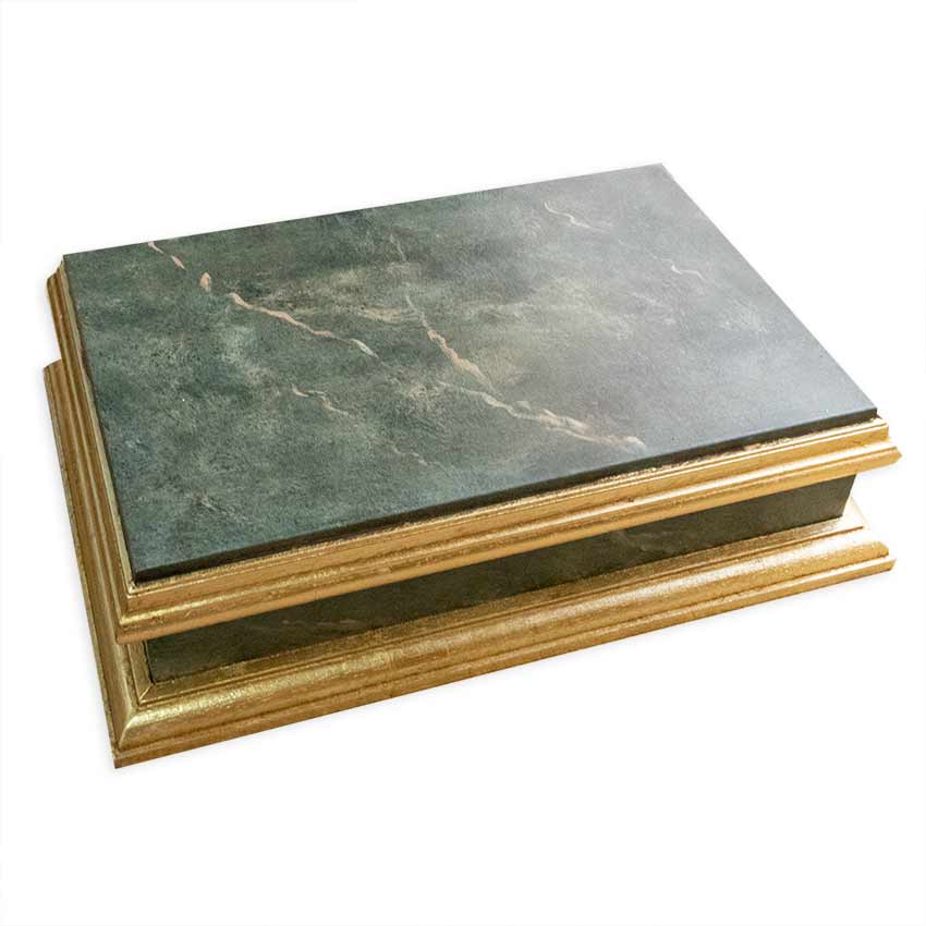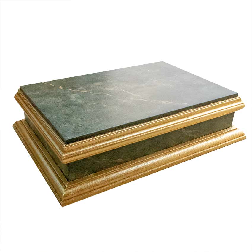 InicioPeanaPeana Santa Rita Peana Santa Rita130,00€ Medidas: abajo: 34×24 cm arriba: 30×20 cm alto: 8 cm Peana con imitación a mármol verde con molduras doradas en pan de oro bajo. Comprar el producto SKU: P00454 Categoría: Peana Etiquetas: dorado, mármol verde, peana Product ID: 46817 Descripción Descripción [wpforms id=»4″ title=»true» description=»true»] Productos relacionados Peana Santa Elena 180,00€ Comprar el producto Sin existencias Peana San Jorge 50,00€ Leer más Peana para crucifijo mod 1 110,00€ Comprar el producto