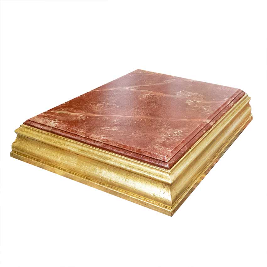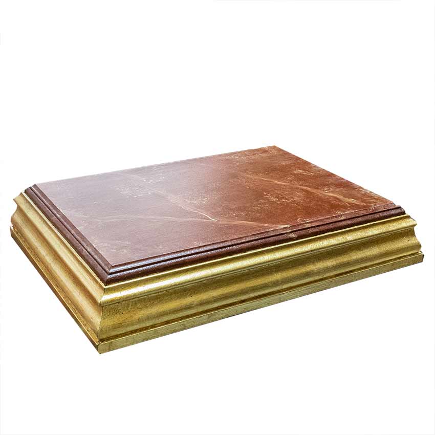 InicioPeanaPeana Santa Sofía Peana Santa Sofía160,00€ Medidas: arriba: 33×23 cm abajo: 38,5×28,5 cm alto: 7 cm Peana para imagen dorada en pan de oro con base imitación a mármol rojo. Comprar el producto SKU: P00459 Categoría: Peana Etiquetas: dorado, imitación, mármol, pan de oro, peana Product ID: 46822 Descripción Descripción [wpforms id=»4″ title=»true» description=»true»] Productos relacionados Peana para crucifijo mod 1 110,00€ Comprar el producto Sin existencias Peana San Bartolomé 0,00€ Leer más Peana San Nicomedes 360,00€ Comprar el producto