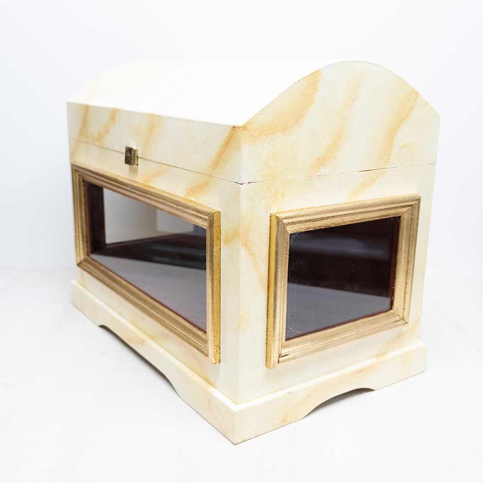 Urna para reliquia con cristales a tres caras. Posibilidad de instalación lumínica en el interior (preguntar por precio)